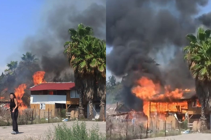 Hatayda sahildeki 3 baraka ev alev alev yandı
