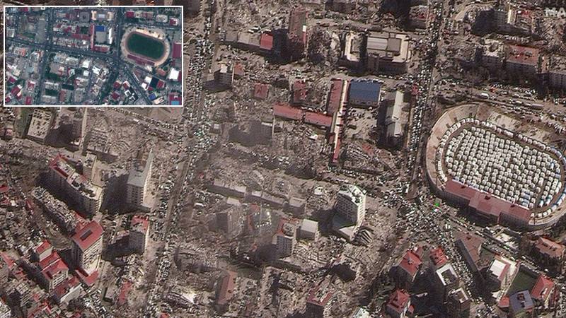 Kahramanmaraş ta depremden önce ve sonra çekilmiş iki fotoğraf felaketi gözler önüne serdi